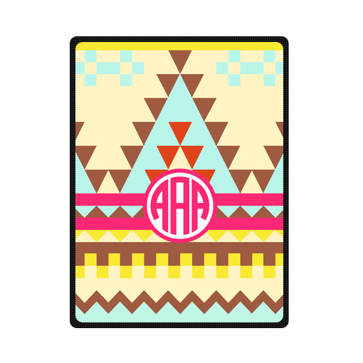 Monogrammed Aztec Tribal Pattern Bedding Throw Fleece Blanket