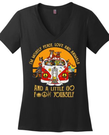 Yoga Peace Love Animal & A Little Go F**k Yourself Womens V-Neck Shirt
